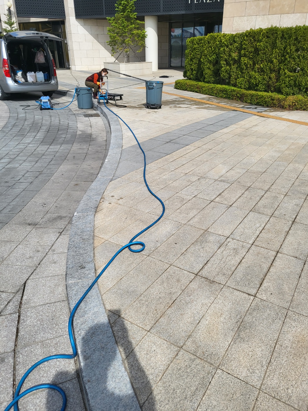 인천 화강석 바닥 고압세척 작업 사진 입니다