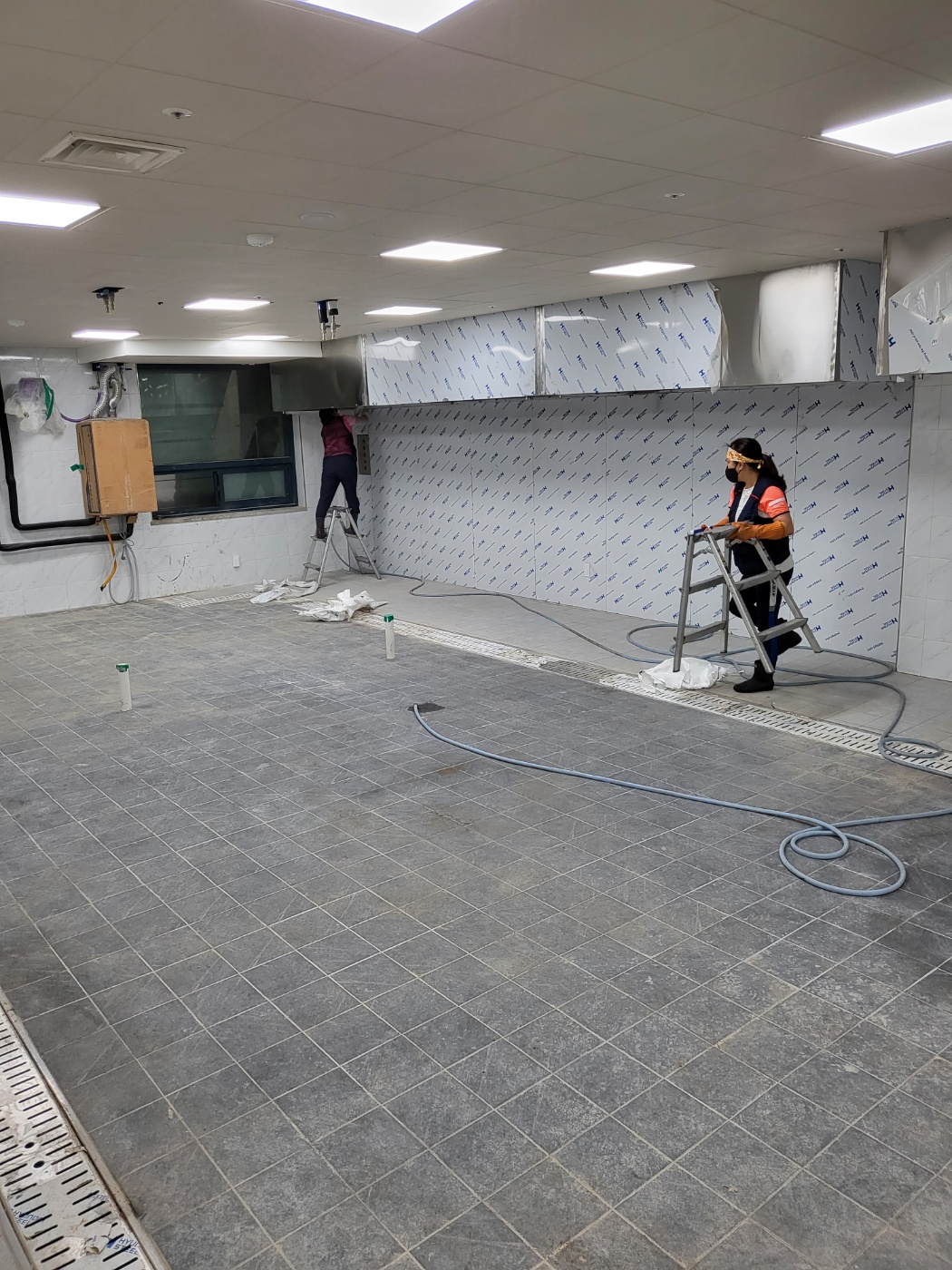| 제목 | 사무실바닥왁스작업 | 안산시청 구내식당 준공 청소 작업 친환경 약품 처리와 고압세척 |